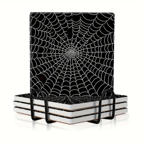 Silicone Spider Web Coasters - Set of 6, Durable Halloween Placemats -